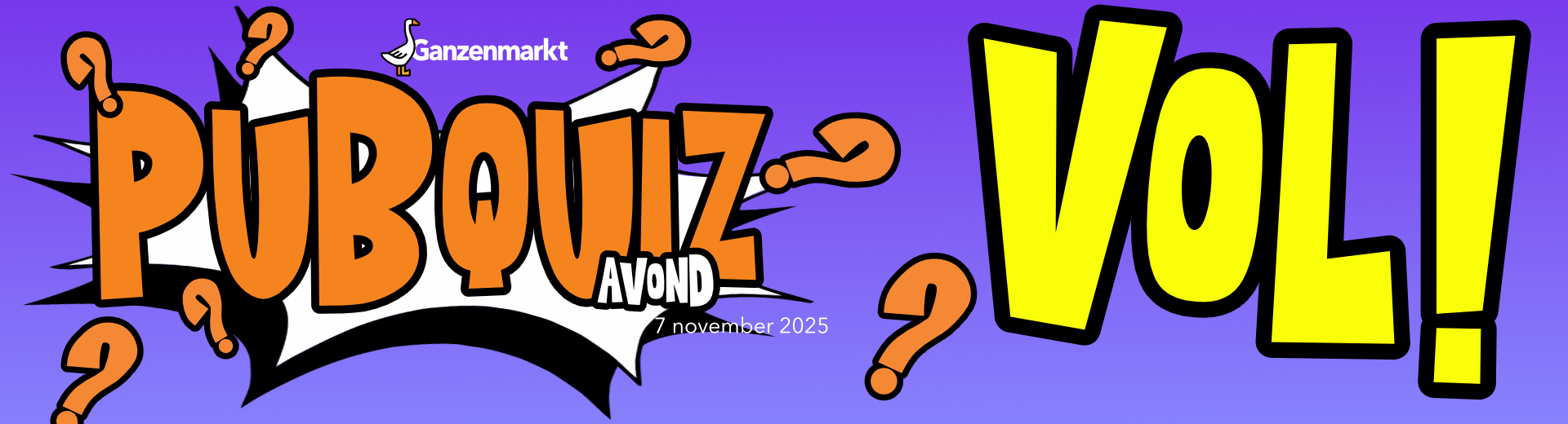 Op vrijdagavond 7 november 2025 vindt de legendarische pubquiz plaats tijdens de Ganzenmarkt. Vorm een team, test jullie kennis én maak kans op mooie prijzen!